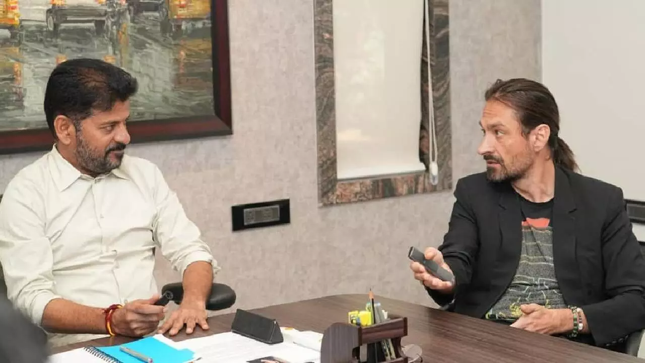 Analog AI CEO Alex Kipman calls on A Revanth Reddy, Chief Minister, Telangana, in Hyderabad on Thursday. They discuss collaboration in addressing problems like traffic congestion, urban flooding and climate change prediction
