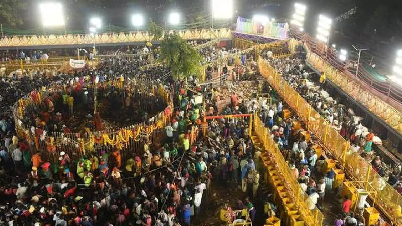 Hyderabad: Chief Minister Revanth Reddy on Monday inaugurated the renovated shrine dedicated to the tribal goddesses Sammakka and Saralamma, along with various other departmental works, at Medaram in Mulugu district. The Medaram temple is set to host the tribal festival 'Maha Jathara' from January 28 to 31. Accompanied by his family members, Cabinet Ministers and other elected representatives, the Chief Minister offered special prayers at the shrine, seeking the blessings of the goddesses. Following that, he participated in the unveiling of a new pylon at the temple. In a traditional ceremony, the Chief Minister was also weighed against jaggery, which is symbolically given as "gold" (bangaram) to the tribal deities during the biennial Medaram Jatara. When he arrived at the temple grounds with his family, they were greeted with lively tribal drum music. The event saw the participation of several Ministers, MLAs, and other elected officials.