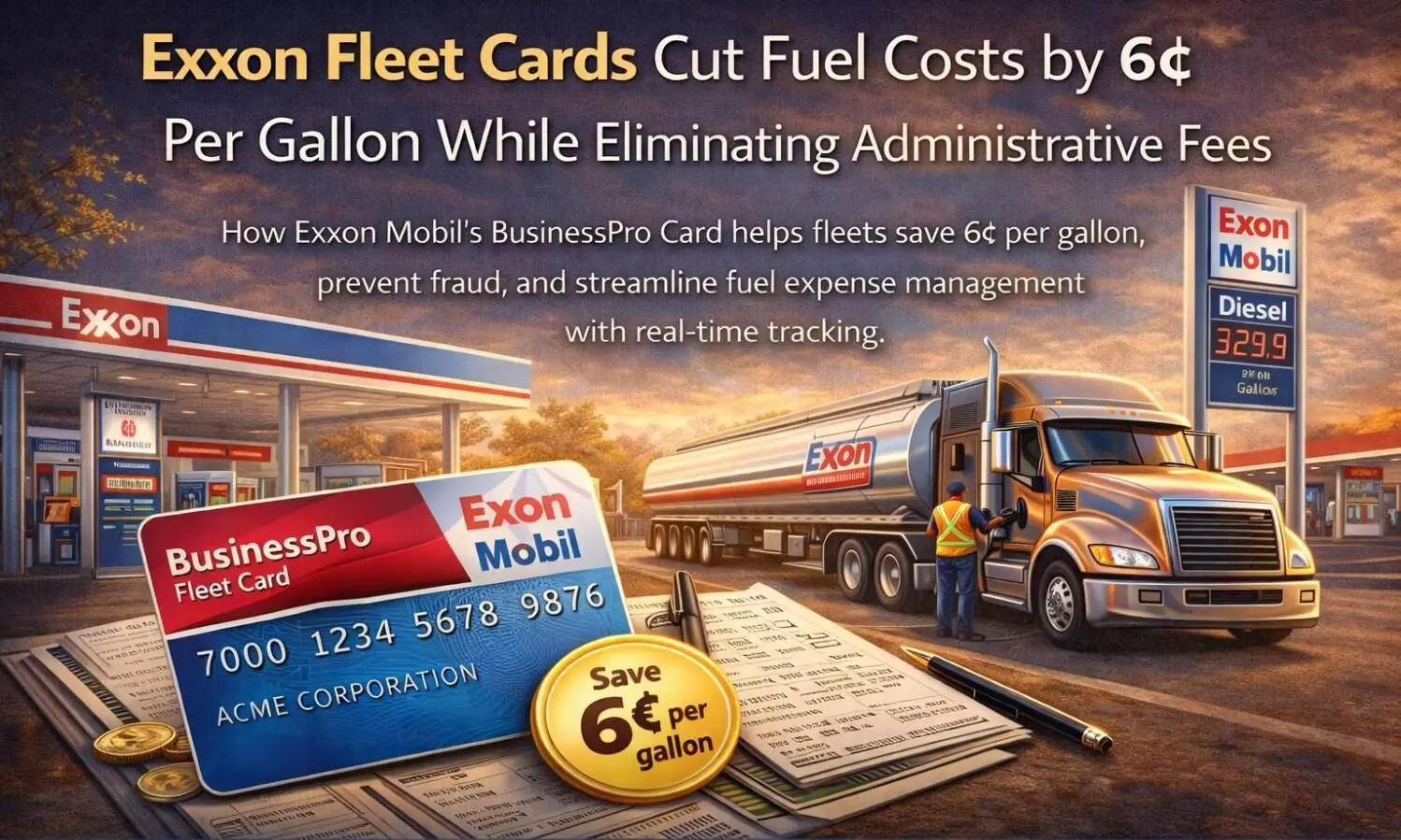 How Exxon Mobil’s BusinessPro Card helps fleets save 6¢ per gallon, prevent fraud, and streamline fuel expense management with real-time tracking.