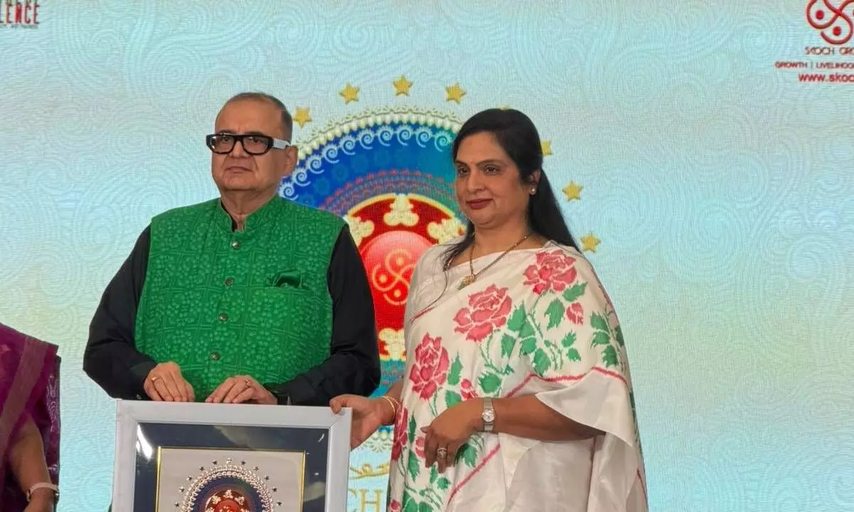 Amaravati: Andhra Pradesh State Handloom Weavers Co-operative Society Ltd. (APCO) has been honoured with the prestigious SKOCH Award–2025 in recognition of its outstanding digitization initiatives in the handloom sector. APCO has successfully implemented computersed billing systems and e-commerce platforms, which have significantly contributed to improved operational efficiency and enhanced sales performance. These initiatives have not only streamlined transactions but also expanded market access for handloom products. The award was presented in New Delhi on Saturday during the SKOCH Summit. On behalf of APCO, G Rekha Rani, Commissioner (Handlooms & Textiles) and Vice Chairperson & Managing Director, APCO, received this prestigious award. This recognition highlights APCO’s commitment towards digital transformation and aligns with the State Government’s vision for modernization and sustainable growth of the handloom sector. It also serves as an encouragement to further strengthen initiatives aimed at improving the livelihoods of weavers and promoting handloom products at a wider platform.