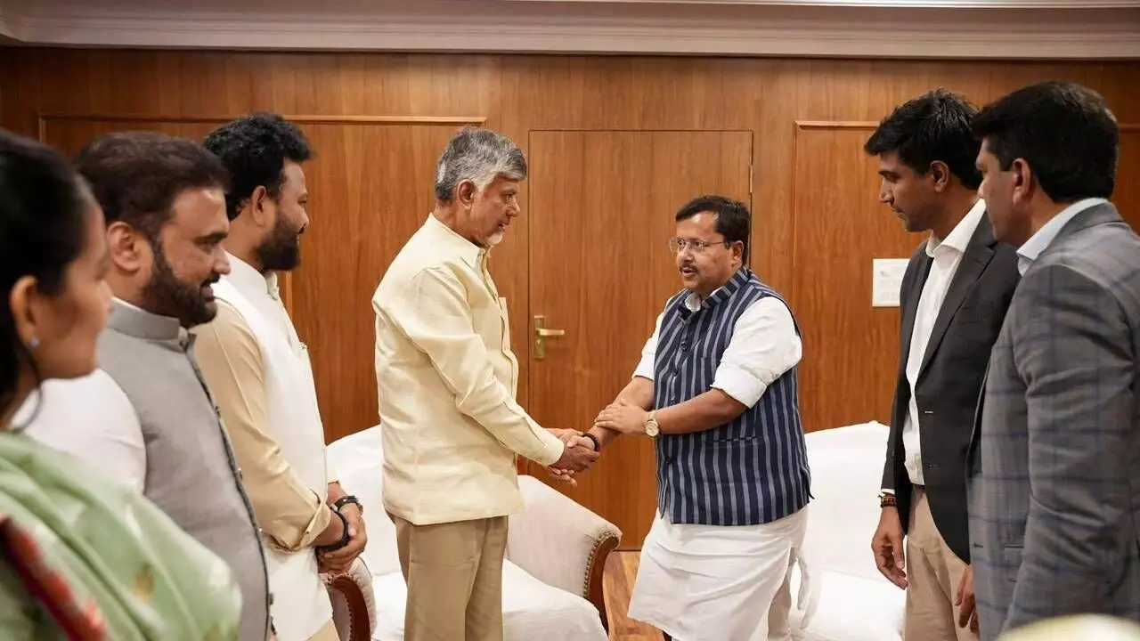 Amaravati: Andhra Pradesh Chief Minister and TDP president made a courtesy call on the newly appointed BJP working president Nitin Nabin, at Bihar Bhavan on Friday. The CM was accompanied by all TDP MPs during his visit. The visit underscores the strengthening of relations among the NDA leaders.