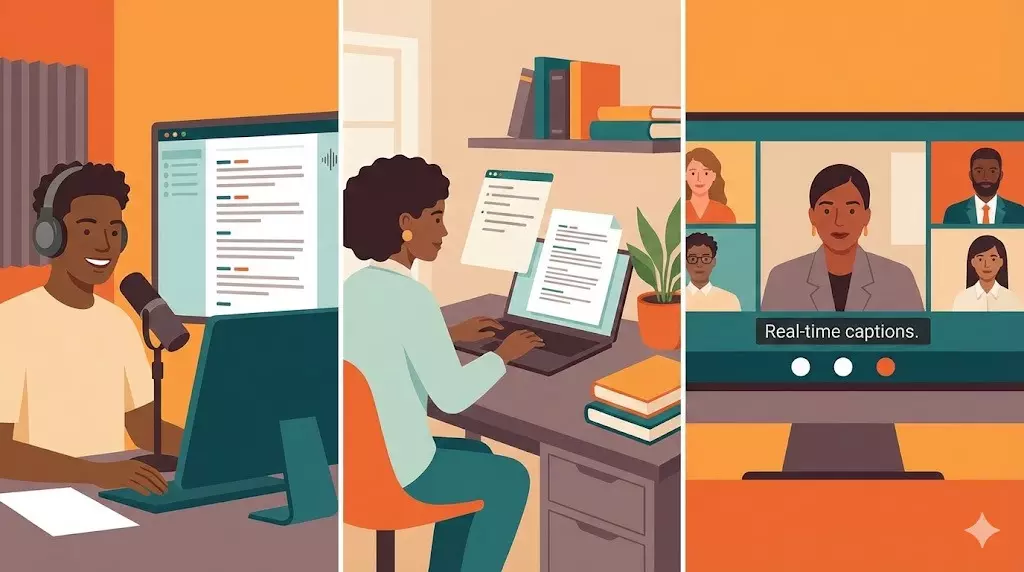 Podcasters turn their audio into show notes, blog posts, and searchable archives. This gets more out of each recording and helps get their podcasts seen online. One interview can be a blog post, social media posts, and a newsletter just from one good transcript.